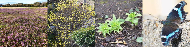 それ以外にも、空き地をホトケノザが紫色に染め上げていたり、庭のサンシュユが満開になっています。