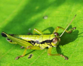 ![]() バッタ科イナゴ属のバッタで、日本では、本州から四国、九州に分布する。 海外では、中国、台湾、東南アジアからインドに広く分布する。 体長は40o前後で、体の側面に濃茶色の筋が入った明るい緑色のバッタ。 翅は、腹端や折り曲げた後ろ足よりも長いのが特徴。 イネ科の植物の葉を摂食するので、イネの害虫でもある。 ただ、同時に水田から得られる重要なタンパク源とされ、多くの地域で食用とされた。