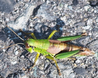 国道290号線の二日町付近の道端で見かけたハネナガイナゴです。 体色が淡い配色になっていますので、成虫に羽化して間もない個体なのかもしれません。